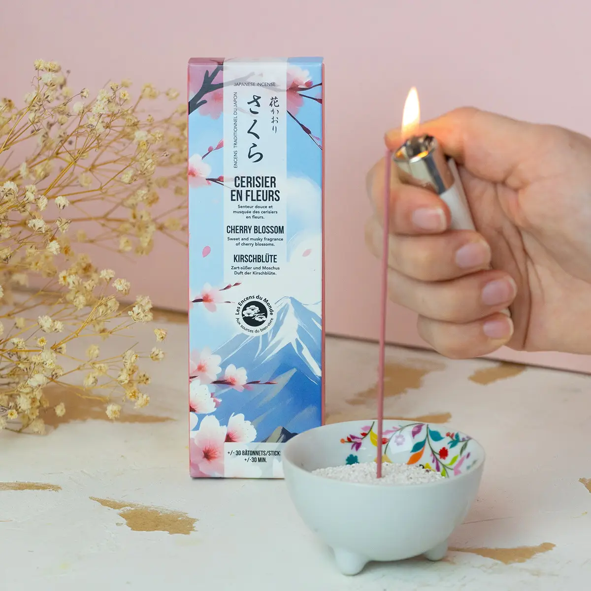 Deze wierook kenmerkt zich door de zachte, zoete geur van een kersenboom in bloei.